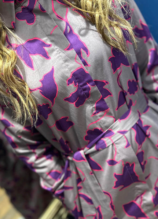 Ladies Dress Cotton Satin Blossum | Grey/Taupe