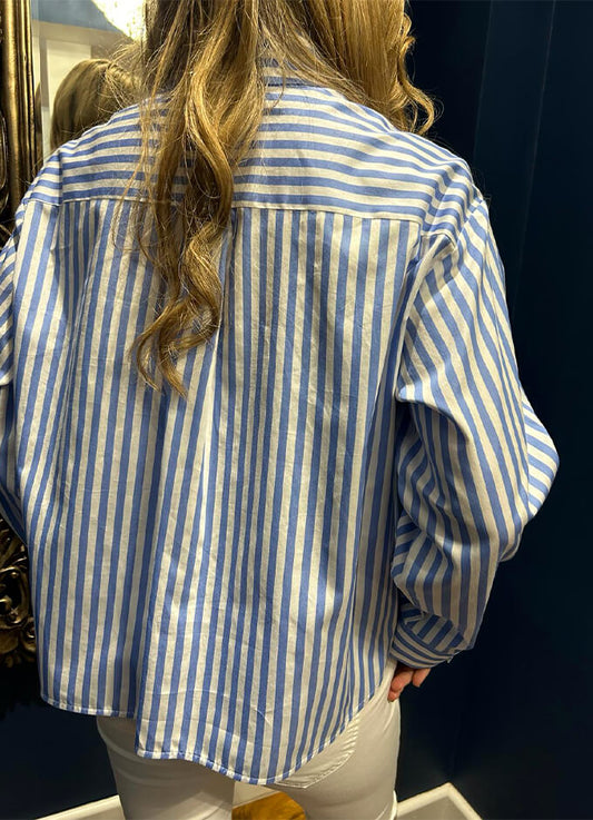 Denim Print Shirt | Blue with Stripes