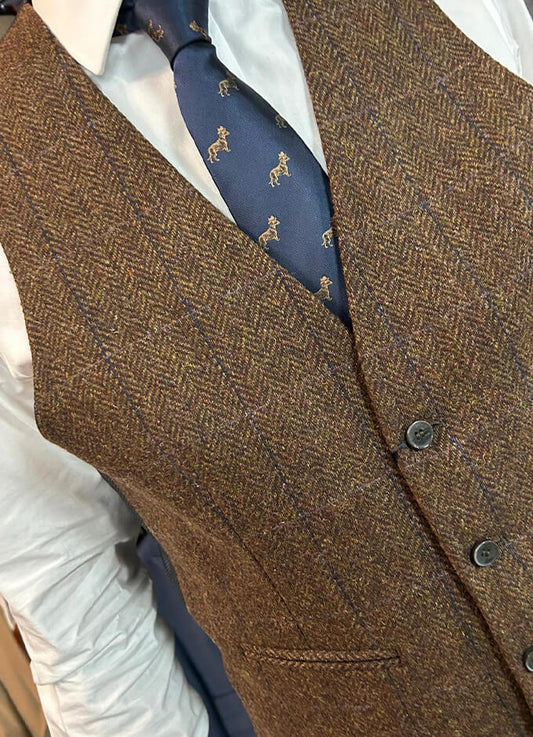 Shrewsbury Green Herringbone Moon Tweed Waistcoat