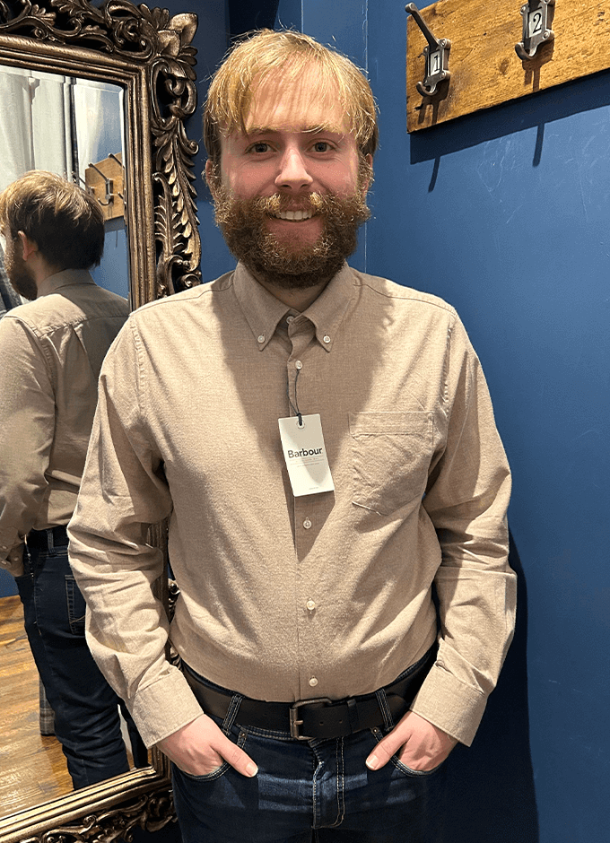 - Barbour and Shield branded label positioned to top left of wearers chest pocket.