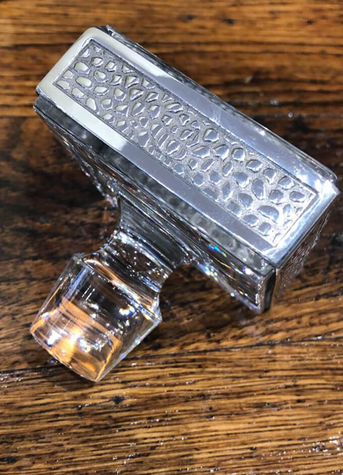 This stunning rectangular decanter by English Pewter Company is from their Regal Stag collection. The heavy-weight glass decanter is adorned with a beautiful pewter stag designon the front. The decanter has a pressed pattern on the base and lid. This would make a wonderful gift for a spirit lover. The decanter is handmade in Sheffield, England and comes in a beautiful silk lined gift box.