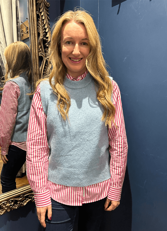 A knit you can wear now and later, the Holly vest is a versatile style to own. In milder weather style alone with chino or denim shorts and when temperatures drop, layer over a ruffle neck blouse or slim-fit top. It comes in an array of colours to choose from and is finished with a ribbed neck, hem and armholes.