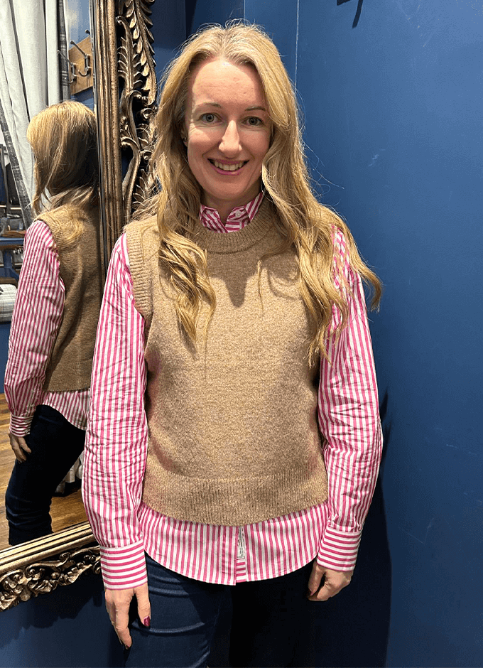 A knit you can wear now and later, the Holly vest is a versatile style to own. In milder weather style alone with chino or denim shorts and when temperatures drop, layer over a ruffle neck blouse or slim-fit top. It comes in an array of colours to choose from and is finished with a ribbed neck, hem and armholes.