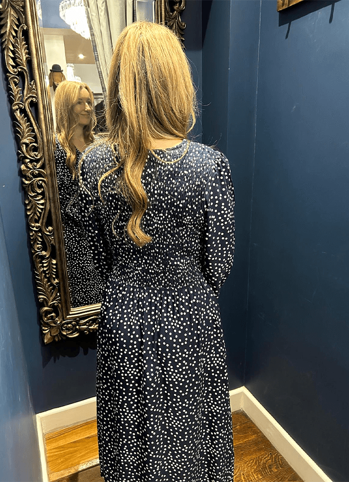 A new addition to your dress collection, the Lilliana is a perfect style to keep in your wardrobe all year-round. It's made from viscose, falls to a midi length and has a flattering gathered waistband. The long sleeves with button cuffs and v-neck makes it easy to layer under knits if needed, while the shirred bodice enhances the look and comfort of the dress. Finished with pockets in the side seams and a hand-drawn print.