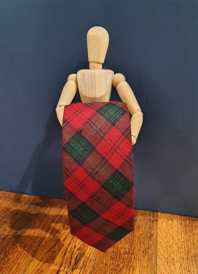 This classic 100% wool tie featuring a Lindsay tartan pattern by Van Buck, made up of red, green and navy. As a piece of gentlemen's neckwear, this quality tie is ideal for celebrations or everyday wear.