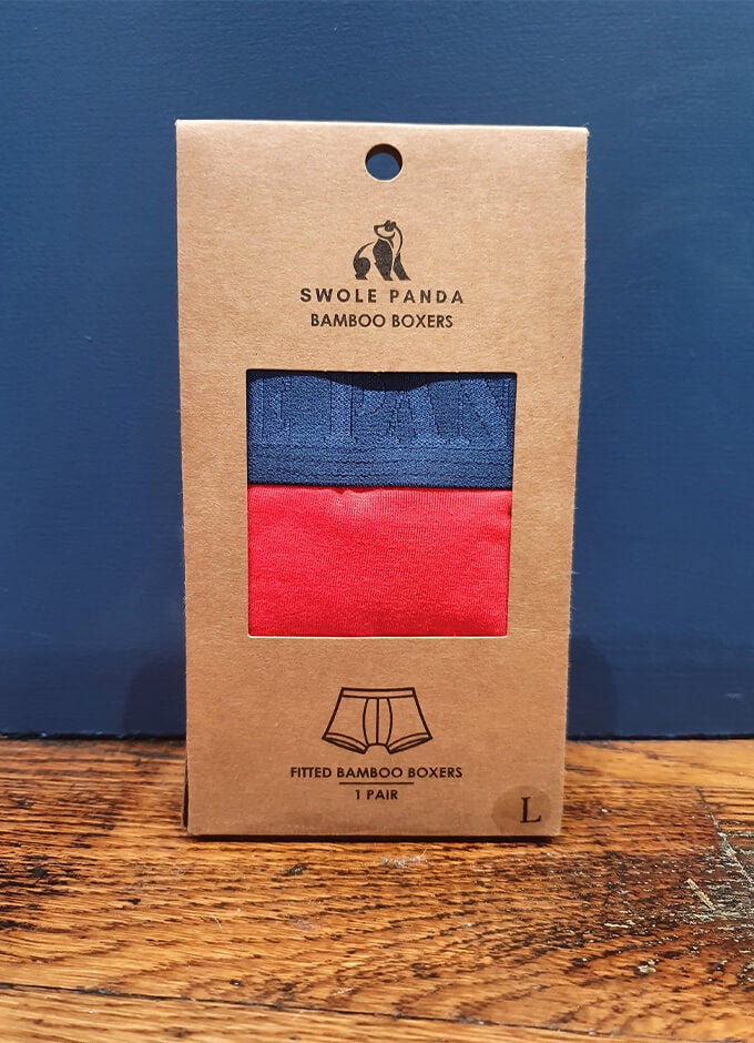 Swole Panda Bamboo Boxers | Red with Navy Band
