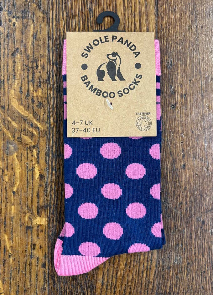When it comes to adding style to your look, one thing you need is the perfect pair of socks. This Timeless navy with pink spots pair is knitted from Swole Panda's unique bamboo blend offering the perfect touch of style you can wear with any outfit.