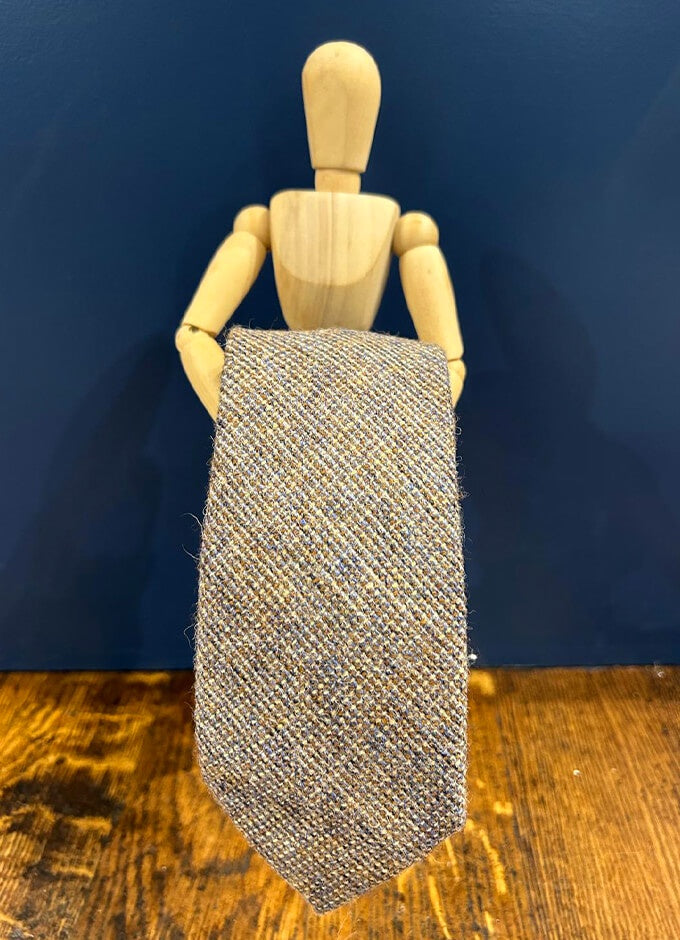 This pure wool tie has been woven in Scotland and made in England. Perfect for autumn time and looks great when paired with a tweed jacket, or suit. This tan fleck woodland colour would look great with a green/brown or rust tone tweed jacket.