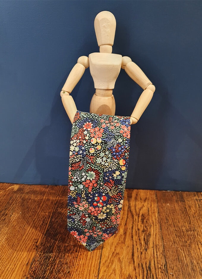 Style doesn't end at the feet - keep well dressed, all over. This tie by Van Buck is made in England and is crafted exclusively in Liberty Tana Lawn fabric. This Elderberry Liberty Print featuring an all over blue, green, red floral and berry design on a dark background. This tie quite characterful, can be ideal for dressing up - at weddings, or evenings - or can be worn to elevate casual styles in your everyday travels.