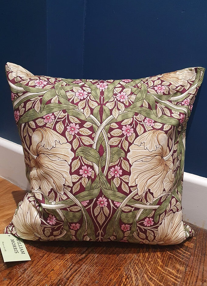 This beautiful cushion with the iconic Pimpernel pattern is from the William Morris Gallery. The famous design sits against a deep wine backdrop. The cushion would look geat on a bed, armchair or sofa to add a pop of colour. The cushion is made in the UK and comes feather filled.