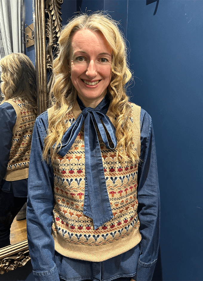 This knitted vest is the perfect layering piece that would look oh-so stylish over a shirt, under a jacket or even by itself. It's crafted from a soft cotton blend featuring an autumnal woodland intarsia design that really sets it apart. Following a classic crew-neck profile, it's finished with ribbed trims and will be sure to elevate your wardrobe. -Cotton rich -Woodland intarsia design -No sleeves -Crew neck -Ribbed trims.